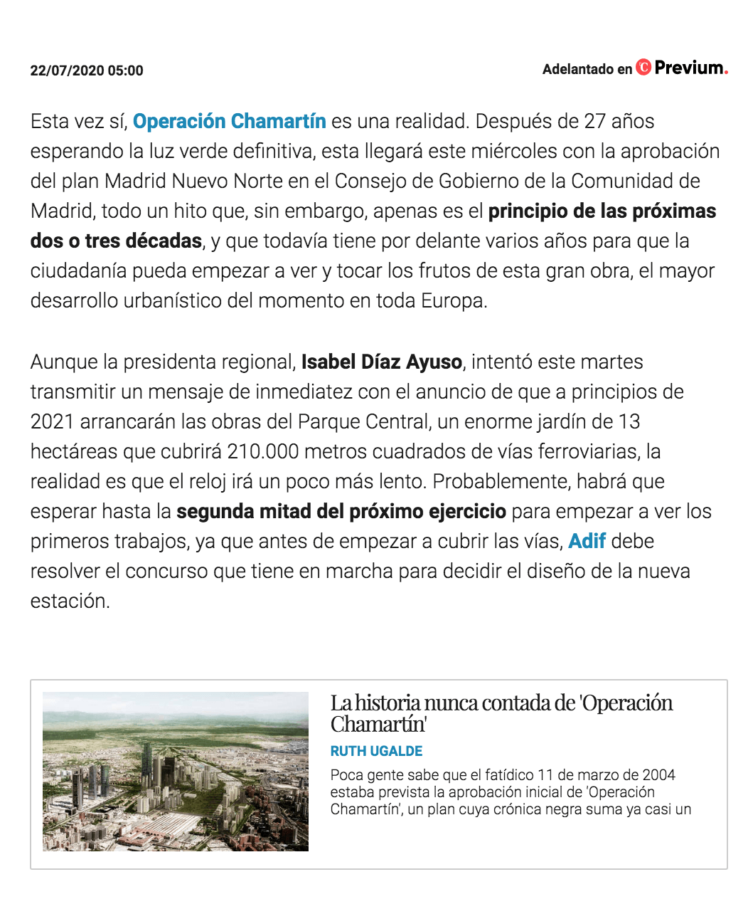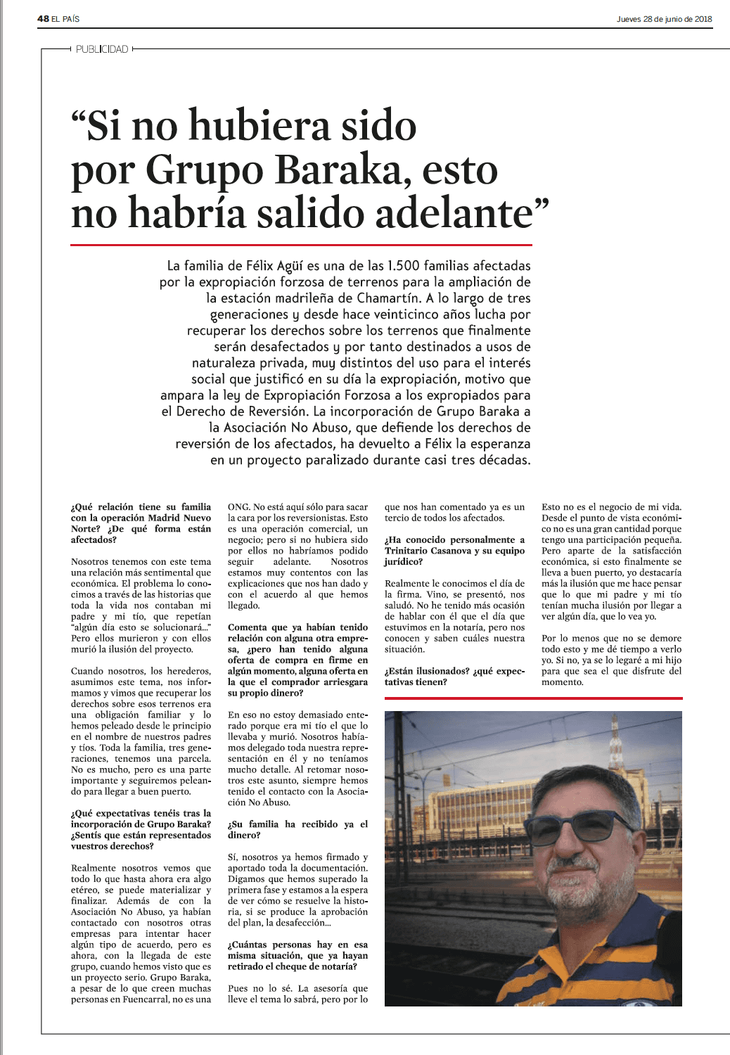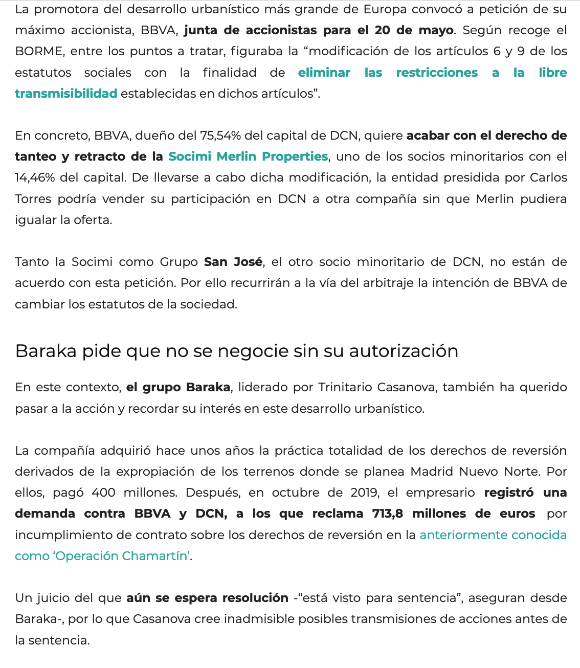 El empresario Trinitario Casanova vuelve a la carga y prepara nueva batalla legal en torno a Operación Chamartín. Grupo Baraka, propiedad de Casanova, trabaja en una demanda contra Adif por los derechos de reversión de parte del suelo sobre el que se levantará el megadesarrollo urbanístico, ahora conocido como Madrid Nuevo Norte.
