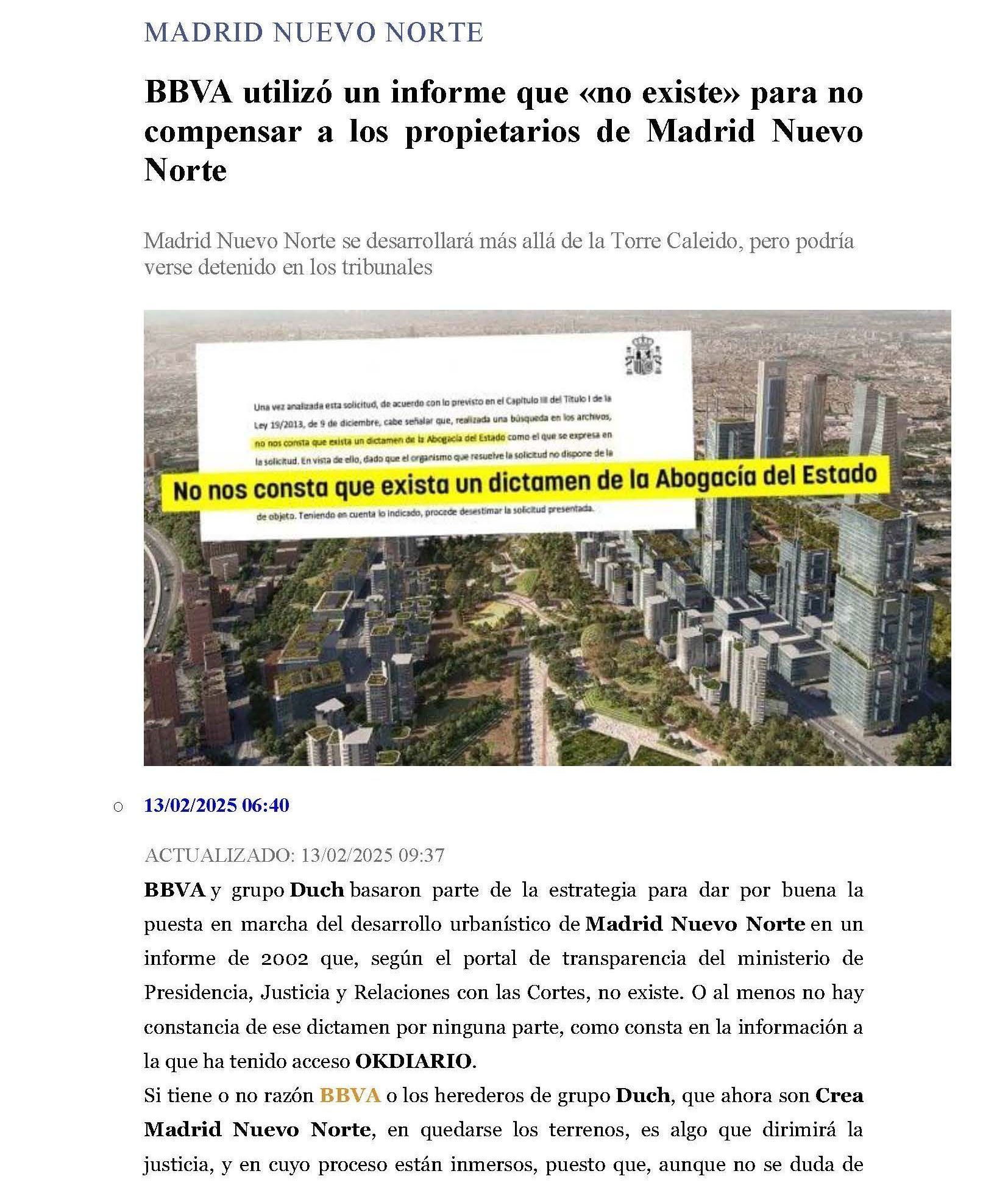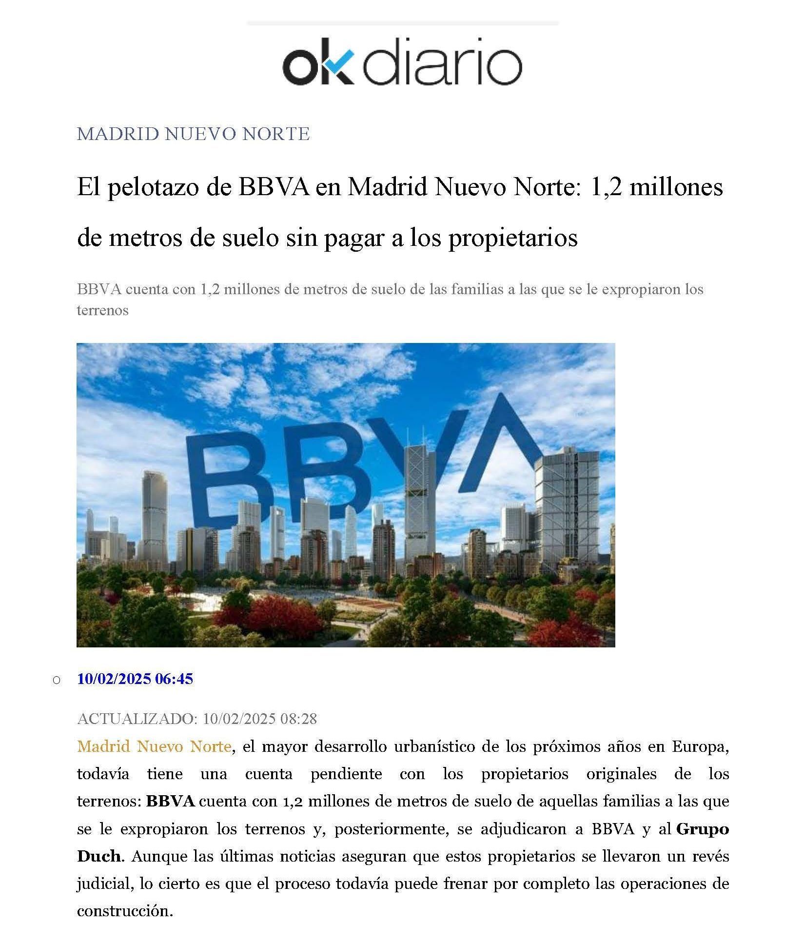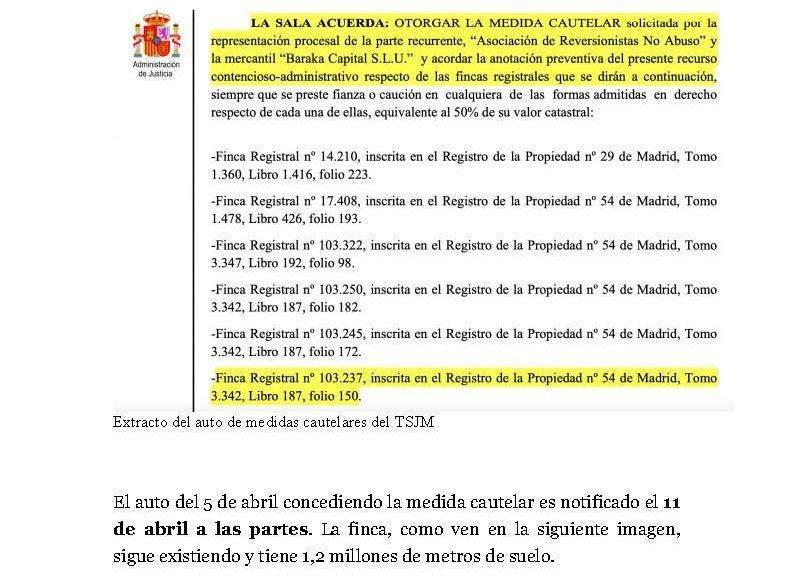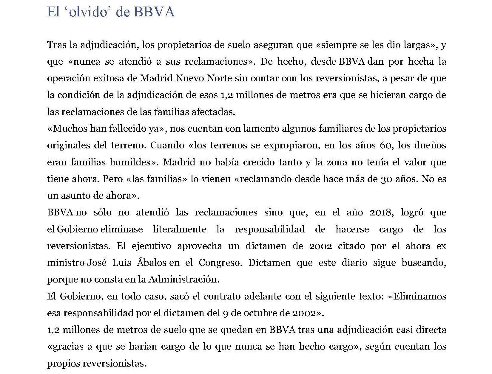 Por su parte, tanto la mercantil demandada BBVA, S.A., como su instrumental DISTRITO CASTELLANA NORTE, S.A., vienen manifestando en sus notas de prensa y en los distintos procedimientos judiciales seguidos hasta la fecha, que no existe la posibilidad de reconocer los derechos de reversión en este ámbito, confundiendo así la extemporaneidad de las acciones judiciales emprendidas en su día con la inviabilidad a futuro de estas mismas reclamaciones, lo cual, no habiendo sido declarado así por ningún Juzgado o Tribunal, ha venido constituyendo sin embargo su principal objetivo a los largo de estos 27 años transcurridos.